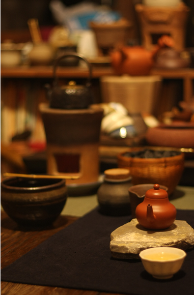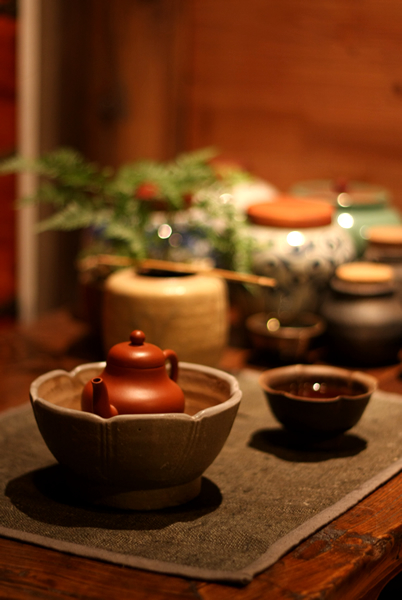 器物的形态,环境的好坏有时候会影响到您的心情,同时会影响到您的味觉。茶席中不同的器物,会在意识方面让您对茶的有不同的感官,产生您品茶的不同心情。老旧器物往往更多给人以历史感,宁静感,老旧器物搭配的茶席更多的让我们感知到茶的历史,茶的朴素,茶道的平和状态。