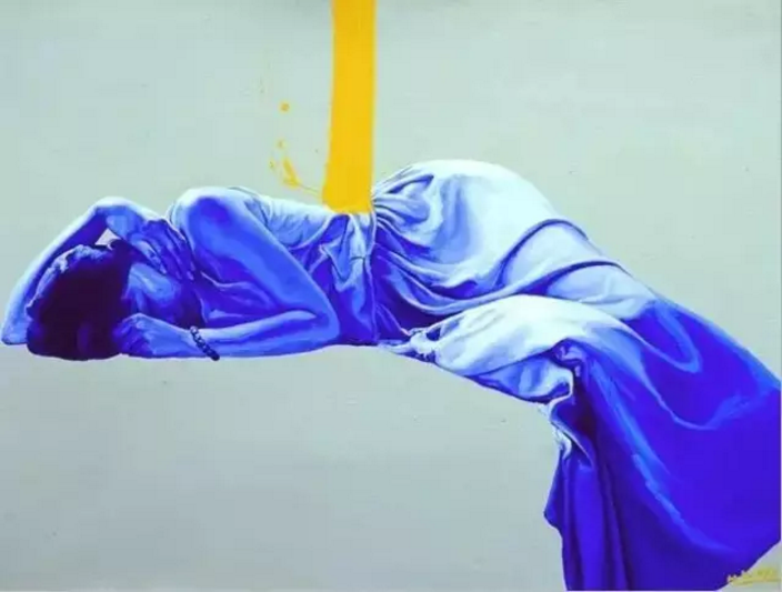 我是在一个平面的空间里来画这幅《大卫》我尽量想去接近文艺复兴的一种精神状态