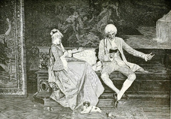 这幅绘画描述了一件著名艺术品:The Cellini Salt-Cellar(没有中文译名),1543年Benvenuto Cellini为法国国王弗朗索瓦一世(Francis I of France)制作的黄金-象牙-搪瓷雕塑。弗朗索瓦一世是最受爱戴的法国国王,酷爱艺术,文艺复兴三杰之一达芬奇就是他接到法国生活,最后达芬奇死在弗朗索瓦一世的怀里。