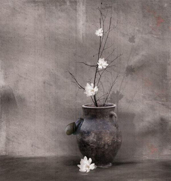 在构图中,讲究线条美,常以 梅花、腊梅等枝条来插制,突出“清”、“疏”,形成清丽疏朗而自然的风格。因而,许多文人士流为避现实多退隐于山水之间时,寄情于山水花草之间,以表心 意。如周敦颐的学生程颢诗云:“万物静观皆自得,四时佳兴与人同”,对花开花落等景象敏感多思。