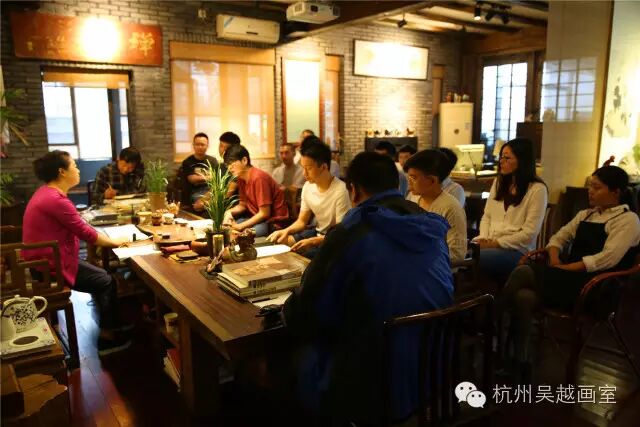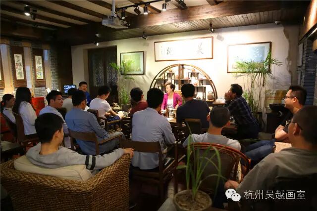 杭州吴越画室的行政副校长和杨副校长正在跟各位老师进行会议内容