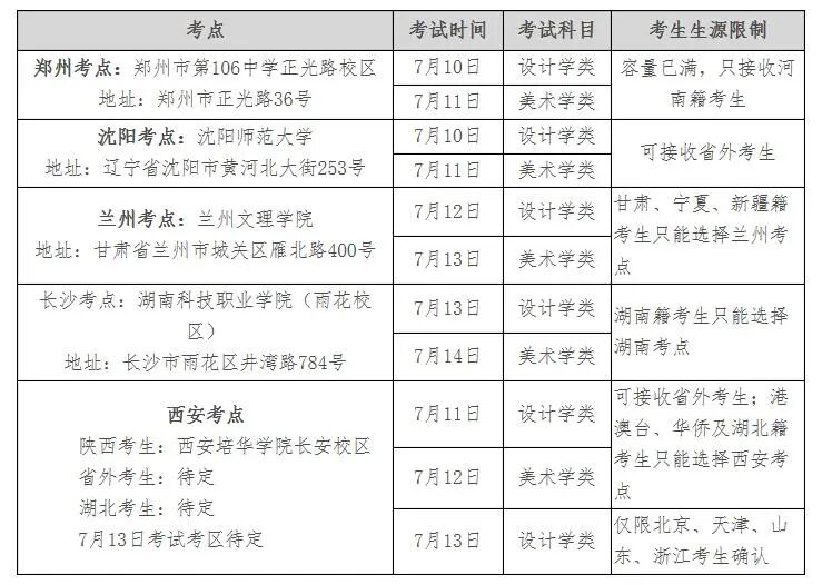一、校考考点设置及考试时间(根据疫情与各考点实际情况若有调整,另行通知)