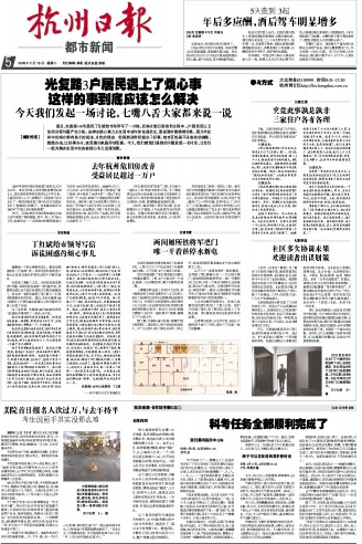 杭州日报2月19日第五版报道:
