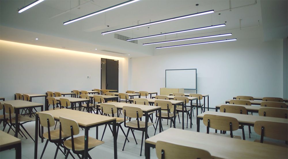 高级深灰色为主色调,未来感保安室,美观、高端,保安可在全方位一览校门动态。接待大厅极具美术馆风格,20米宽前台,霸气迎接你的到来!