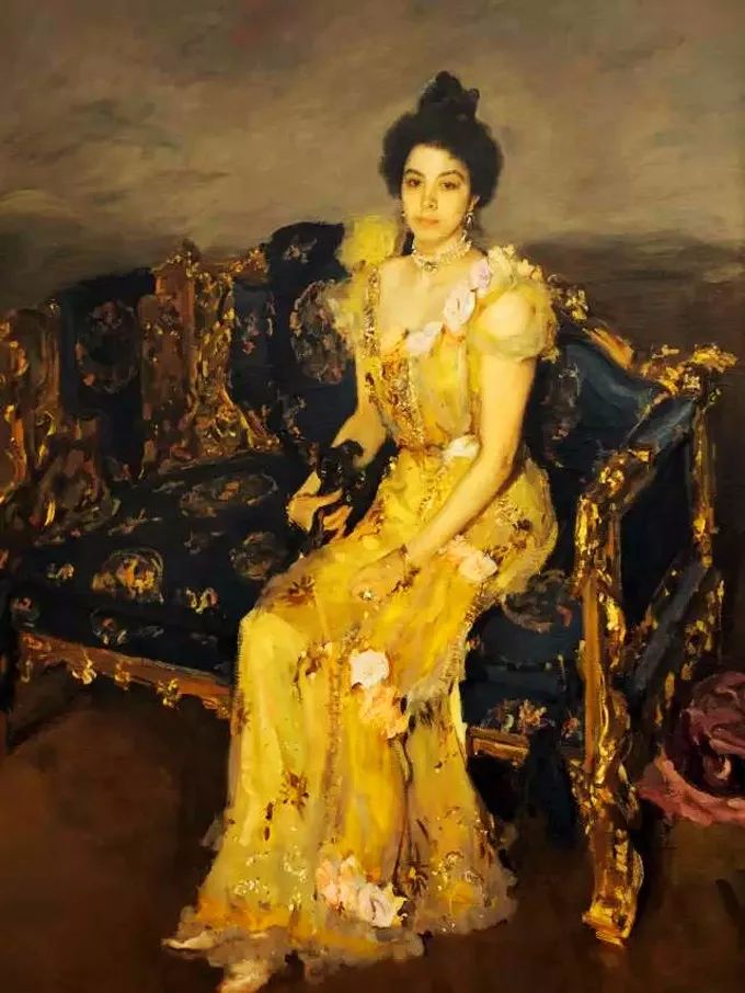《少女与桃子》画家谢洛夫在阿勃拉姆采沃庄园时,为马蒙托夫的女儿薇拉画的一幅肖像画。马蒙托夫是个超级土豪,当时俄国商人对文人艺术家都是比较支持的。