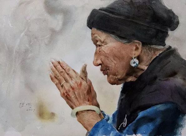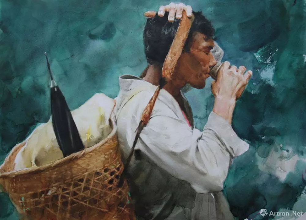 特别是他的水彩人物,造型严谨厚重