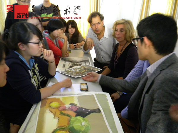意大利教授们在现场给同学们看作品,并现场录取一位同学