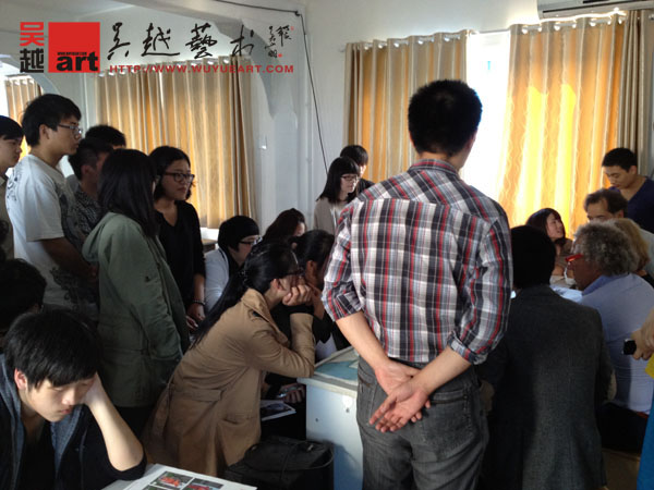 楊超凡校长正在仔细讲述吴越美术学校的发展