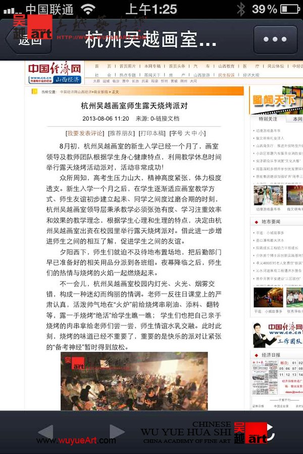 全国各大媒体对我校「杭州吴越画社美术学校」前段烧烤活动报道,其中包括:凤凰网、中国网、中国经济网、中国社区网、新中网等,多家权威媒体!
