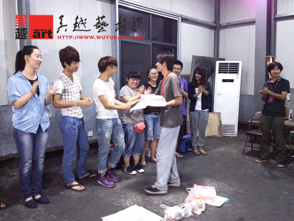 接着,我们吴越画室为提高学生们的信心,颁发奖励给16号考试前十名的学生和进步最快的学生。前十名:张梦洁、陈铠、黄丽丽、赵熠芸、黄奎富、沈烨、朱昱馨、朱荣昇(并列第七名)、申屠林波、徐家航、臧延琳(并列第九名)进步最快:吴佳妮、张晓雪、张梦、夏佳丽、罗玲、孙哲芳、张晨宇、虎治城。老师们都高兴的为得奖的同学颁奖,引起了同学们的阵阵掌声!希望同学们再接再励!