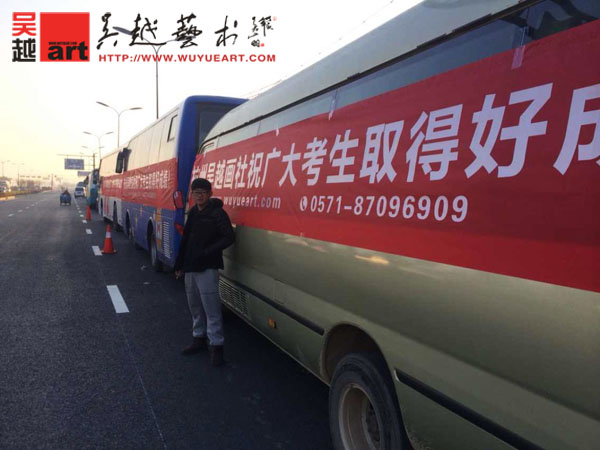 今日,杭州吴越画社的同学们考西安美院,5:30就早起准备。今天考试一百多人,三辆大巴,停在杭州师范大学仓前校区的正大门口,给吴越的同学们提供好充分的后勤服务,中午在大巴上午休,同学们很安心,家长们很放心,细节决定成败,细节决定品质!