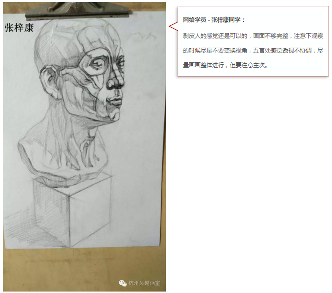 吴越名师在线学生素描、色彩、速写作品点评:杭州吴越画室