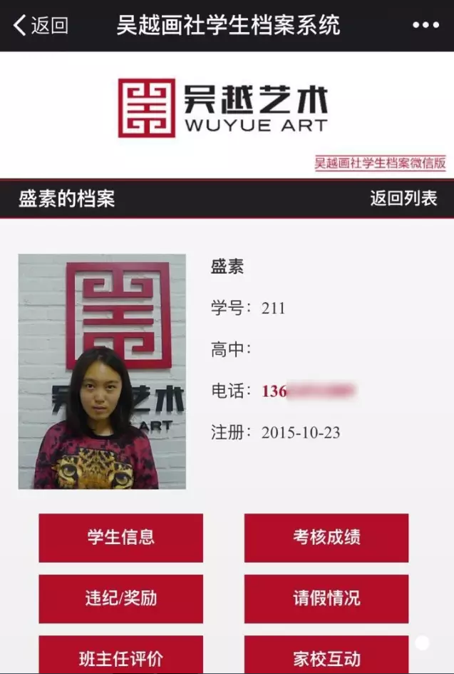 盛素学姐在吴越画室的学籍档案