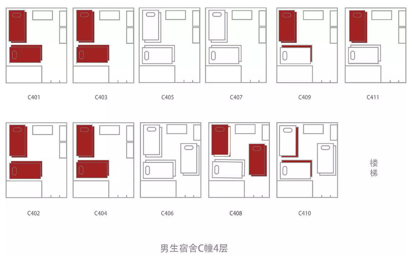 3、您可以提前楼层(女生A楼四层楼,女生B楼三层楼带阳台,男生C楼五层楼)、选择几人间、上铺或下铺、南北朝向等。