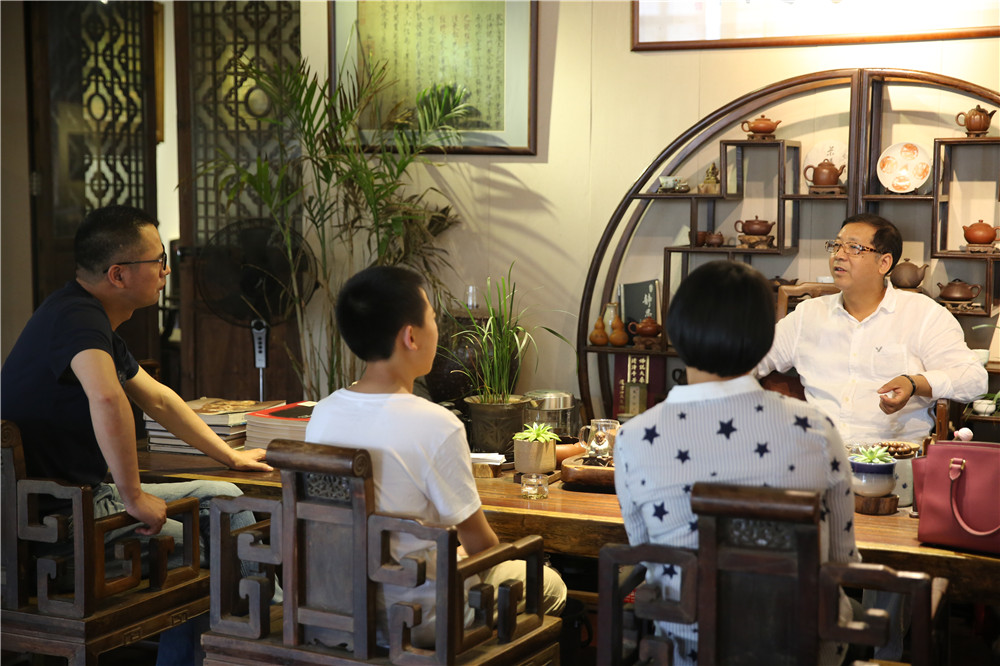 杨校长和家长一起交流,