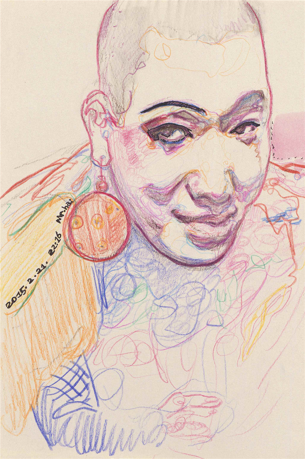 十几年以来我用过很多品牌的彩铅,也熟知它们的特性。之前也用过一些其他的材料,比如水彩或是其他可溶性的材料,但是彩铅是相对方便的,比如我可以找个地方画一些大画,但是运输不方便,成本比较高,占用的空间比较大,因为我比较喜欢旅行,大学的时候经常去外面给学生上课,流动性也比较大,不定性太多,我就想,要去尝试一个东西,不要画幅太大,随身可以带的,后来用到水笔、针管笔,后来觉得彩铅比较方便,可溶彩铅也可以画出水彩的感觉。