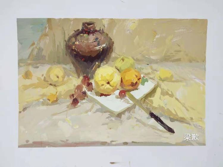 无论画素描也好,画色彩也好,都离不开我们对事物的观察。物体的色彩不是孤立存在的,要把物体与环境之间的色彩联系起来,相互比较,整体观察。目的是为了控制画面的基本色调与色彩的大关系,在这个观察的过程中,我们要对比物体之间的冷暖、明度、色调,还要对比物体的色相,只有这样我们才能很好地控制住画面的大关系,一幅好的作品离不开我们对事物的仔细深入的观察,更离不开我们的理论基础知识,只有理论基础知识足够到位,我们在绘画的过程中才能注意到问题,才知道问题出现在哪里,才知道如何改正。