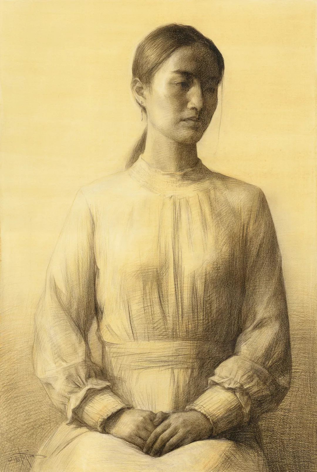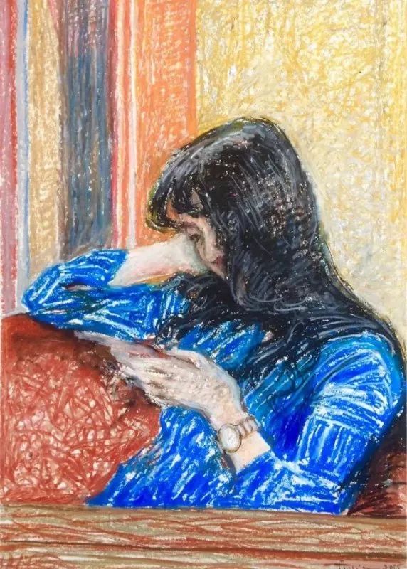 2018年,顾一鸣素描作品《穿长裙的女大学生》