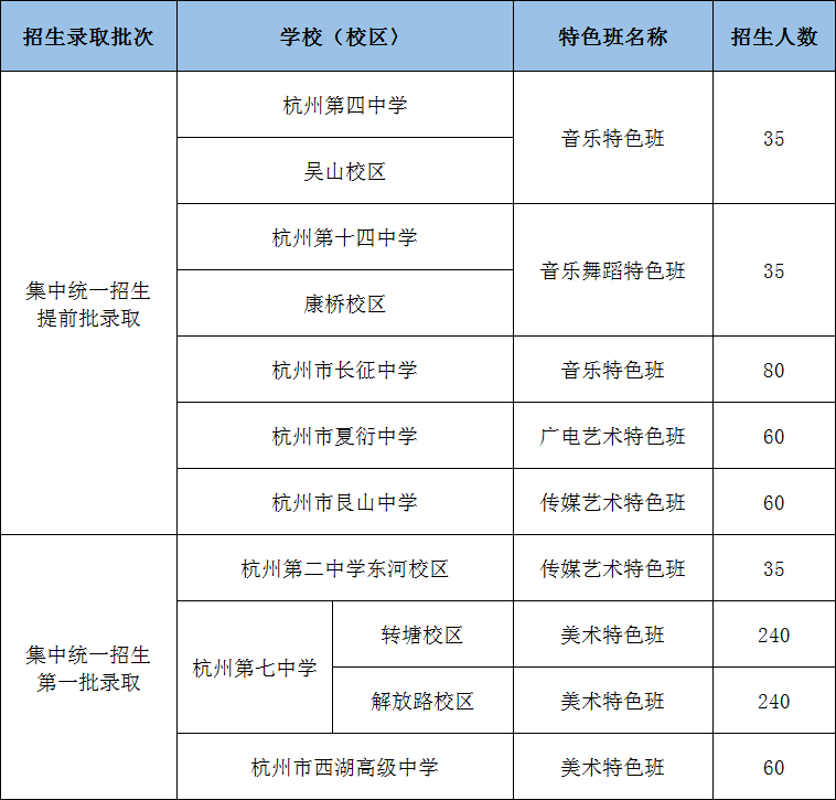 中考美术 | 杭七中扩招翻倍:关于2020年杭州市区普通高中特色班招生工作的通知,以及杭州第