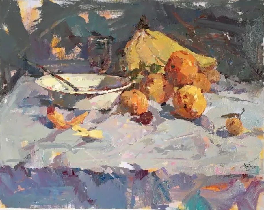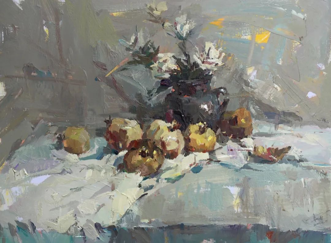 在画室时每天早晨八点就开始画画,