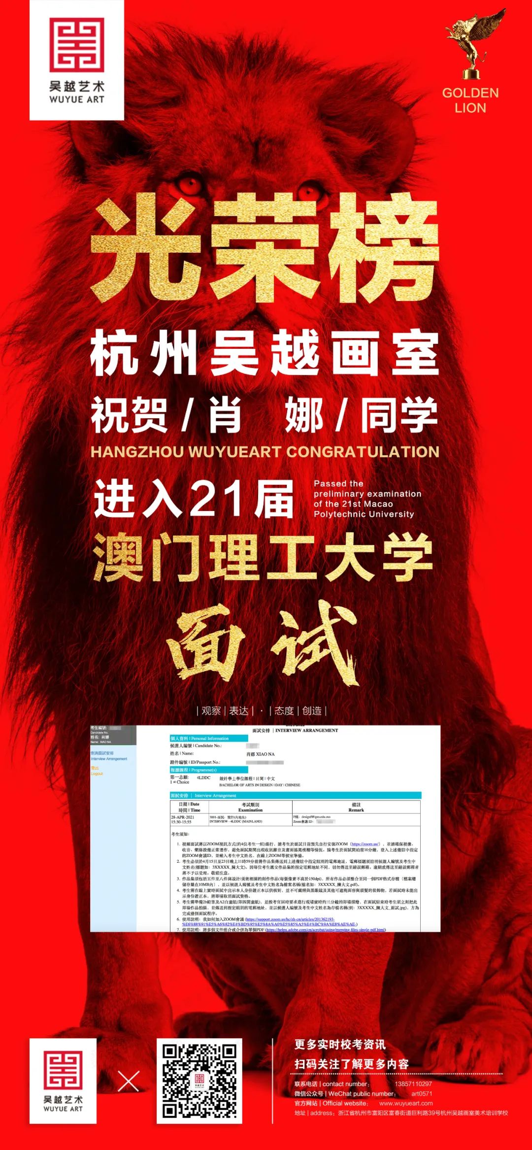 吴越喜报|杭州吴越画室:祝贺五位同学进入2021届澳门理工大学面试(附往届澳门地区院校申请