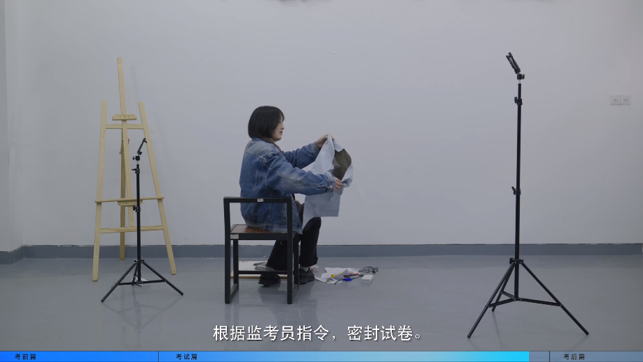 十、录制视频须严格按照拍摄要求和视频拍摄示意图录制。视频录制一镜到底,不间断录制,画面中仅允许出现考生本人,考生人脸、手部和试卷不得离开画面拍摄范围,视频能准确反映出考生用笔,不得随意切换拍摄角度,不得做任何打招呼和有暗示性的言语行为,视频作品中不得出现任何可能影响评判公正的信息或标识,如含考生信息的提示性文字、图案、声音、背景等。不得采取任何视频编辑手段处理画面,必须保持作品完整真实。若有违反,视同作弊。