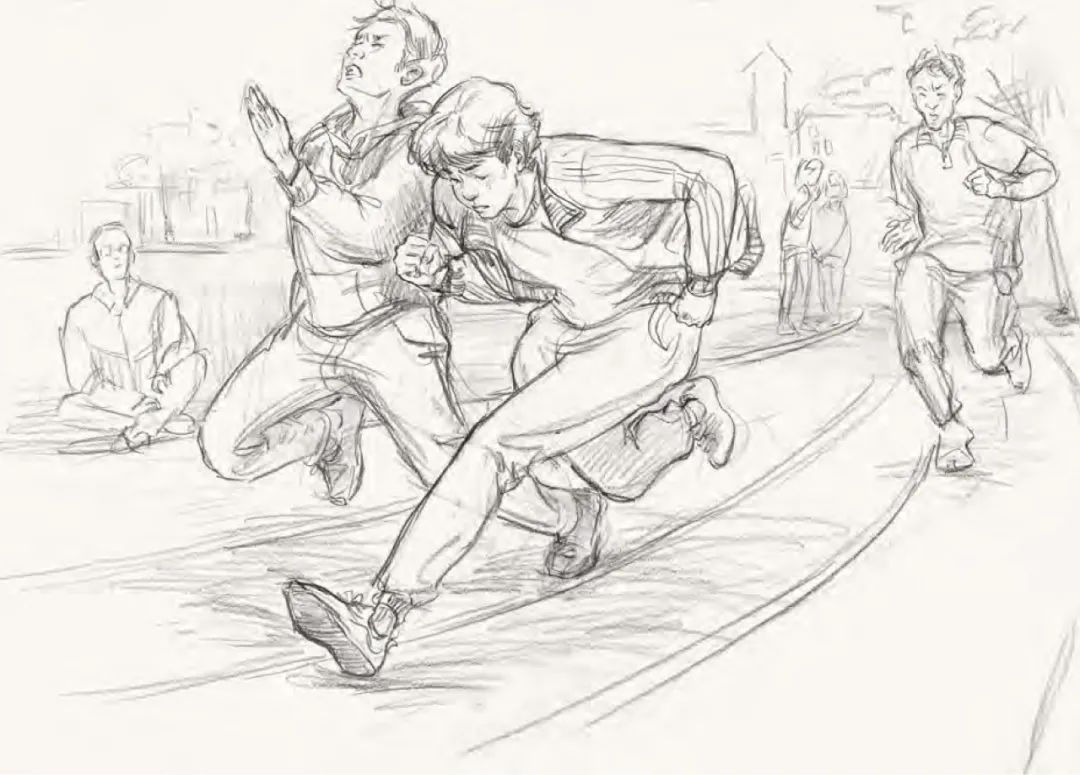 速写:《连续动态》默写青年坐着穿鞋,站起来,再行走的动态。