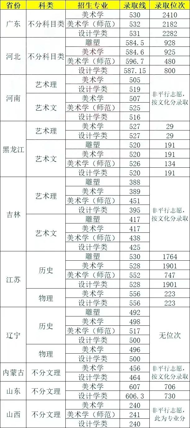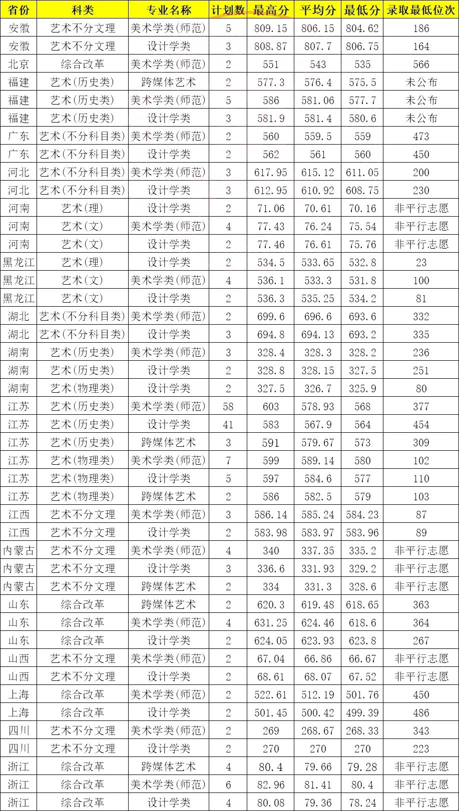 北京师范大学(北京校区)艺术类(非校考)专业2023年招生计划及近两年录取分数线:(上下滑动查看)