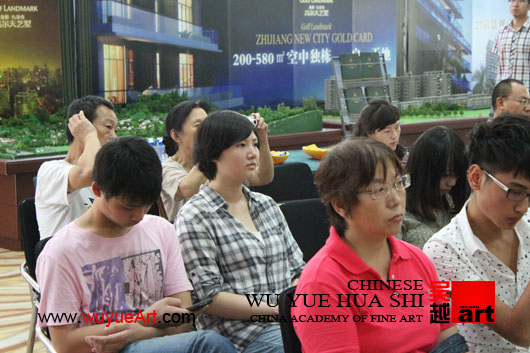 2012年8月25日,杭州吴越画社应《美术报》之邀,全体同学参加“美术报名家工作室公众开放日暨藏画于民文化惠民活动”,在杭州金都高尔夫艺墅会议中心举行。美术报名家工作室首期特聘导师陈振濂、何水法、范扬等出席活动,数百名书画爱好者共聚一堂,欢享书画大餐。
