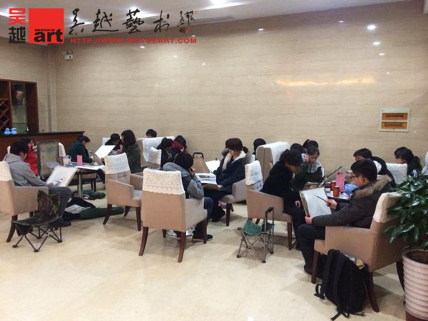 2014年1月12日,杭州吴越画社校长杨超凡带领吴越同学们去到无锡参加江南大学的校考考试,12日报名确认,12日-13日这两天在无锡酒店内组织同学做练习,14号进行考试,同学们加油啊!