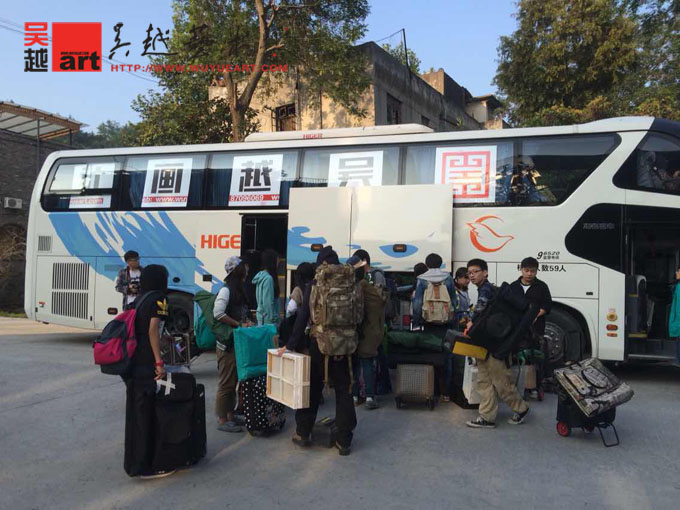 清晨,同学们在吴越教师的指挥下有序的在操场中排好队,等待着去丽水的大巴。大巴至校门口,学生们有条不紊的将自己的行李放入大巴底箱,上车,启程!经过3个多小时的车程,终于到达我们此次写生的基地——丽水大港头学生写生基地。