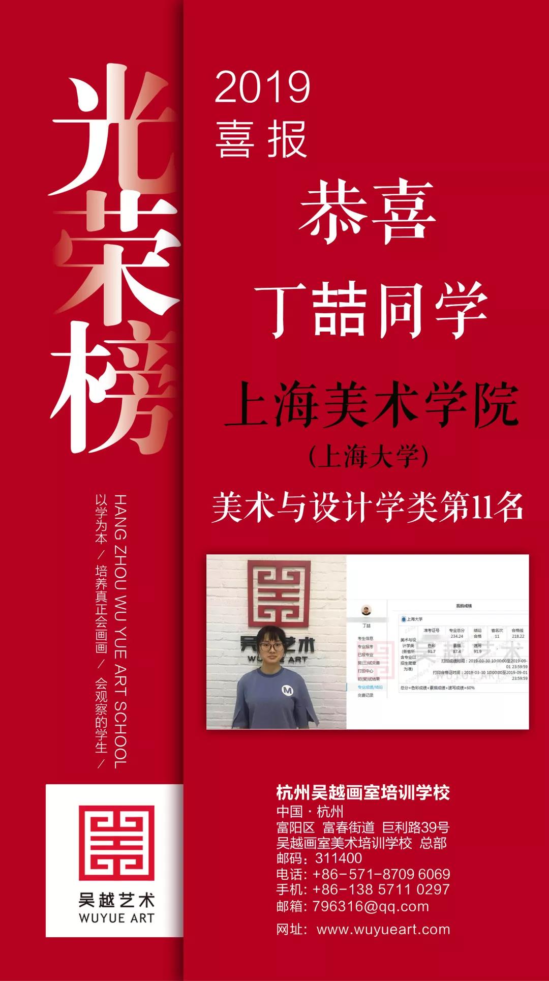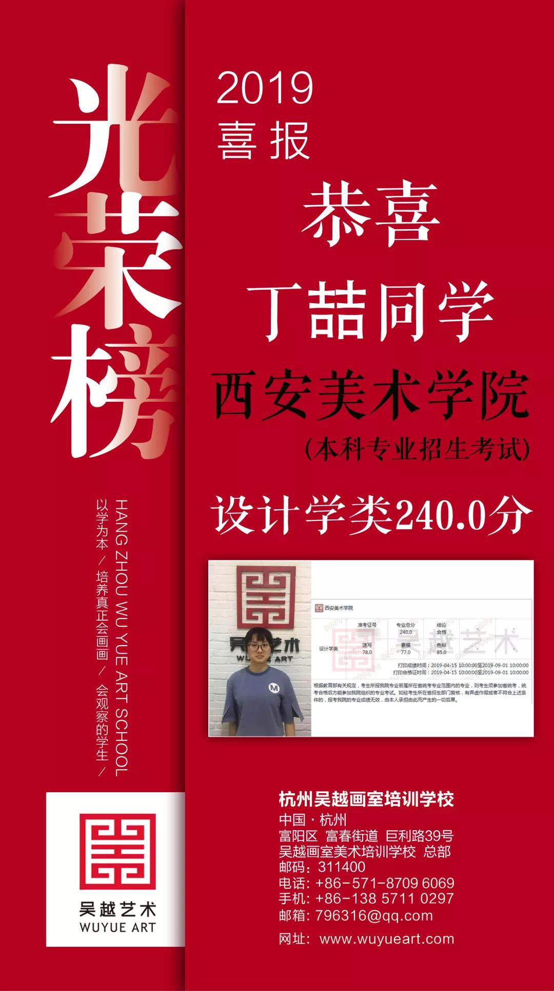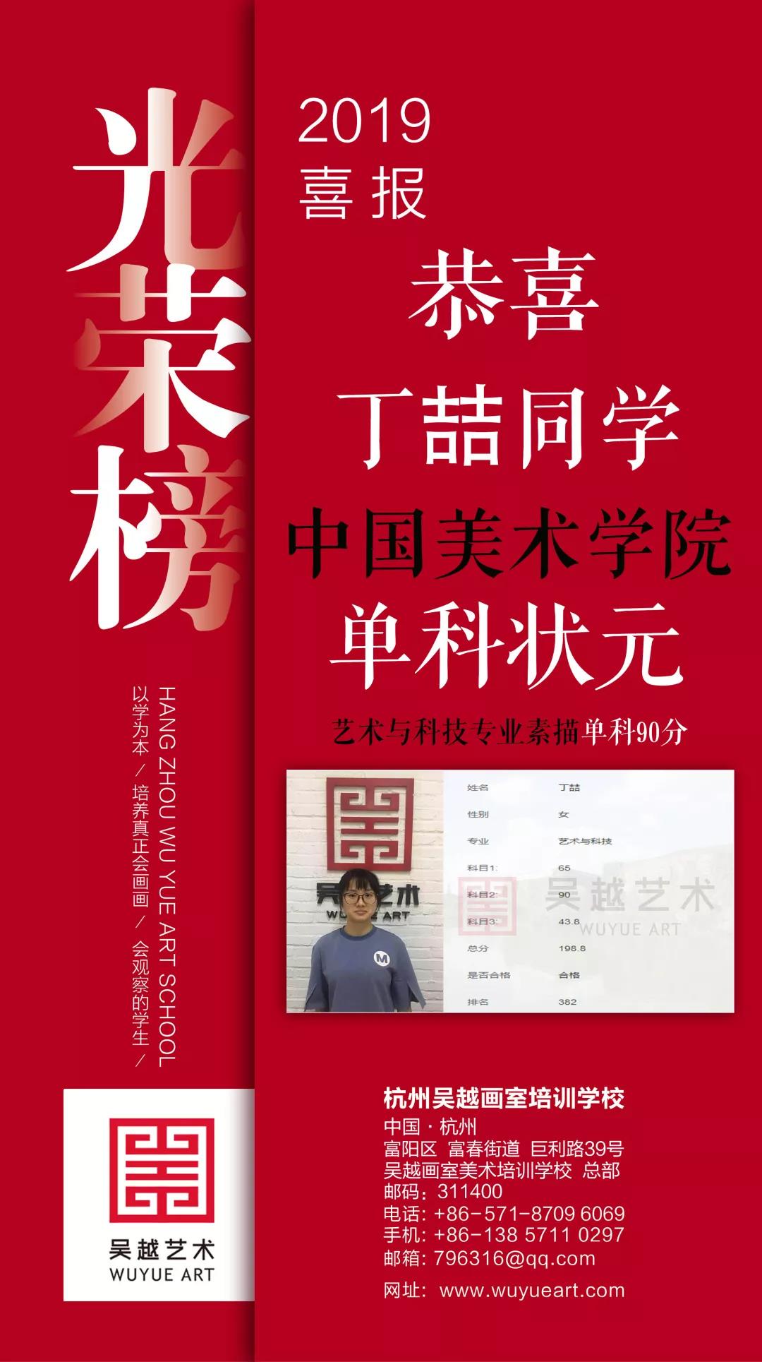 考神篇 | 杭州吴越画室2019考神丁喆:斩获中国美院、上海美院、西安美院三大美院五张合格证