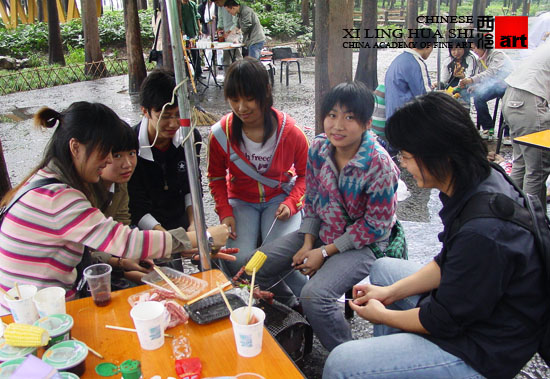 西泠画室秋游烧烤活动-05年11月初部分学员集体照 烧烤场景
